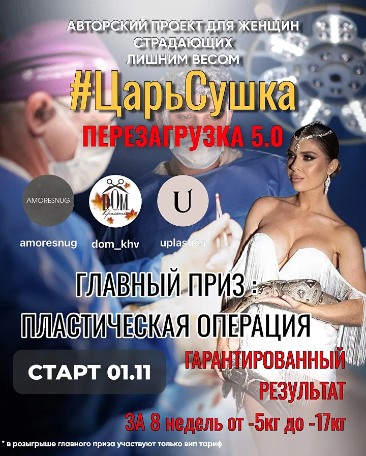 Открыта запись на лучший проект в индустрии похудения #ЦарьСушка Новый поток. Старт 01.11. Успейте занять свое место в группе!